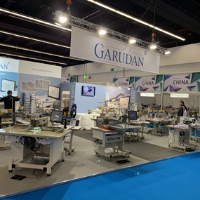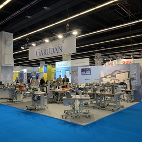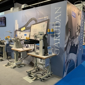 We brought to exhibition approximately 20 Garudan machines. Most customers were attracted by large programmable sewing machine GPS/G-10060 with extra large sewing area (100 x 60 cm), now already with the possibility of extension of the sewing area to 100 x 85 cm. Besides this machine, visitors could also test overlock model UHD9024A with automatic backlatch function, which raised interest among many of them. Another new launch was introduction of one needle hugh speed machine GF-1115-147 LM equipped with new type of touch screen for easier user-friendly operation.